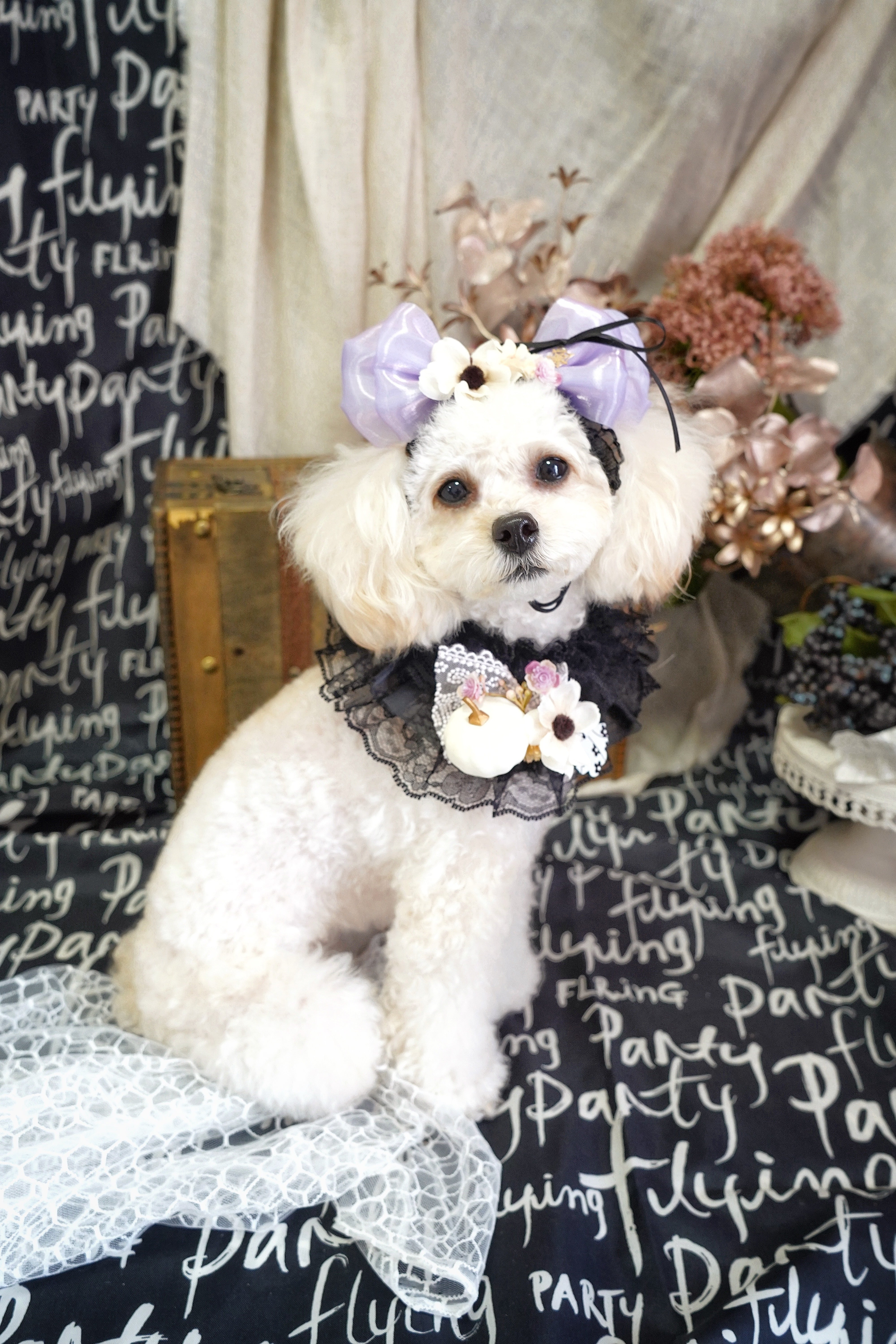 ・ワンちゃん用のアクセサリーに使われているお花は全てアーティフィシャルフラワーです。