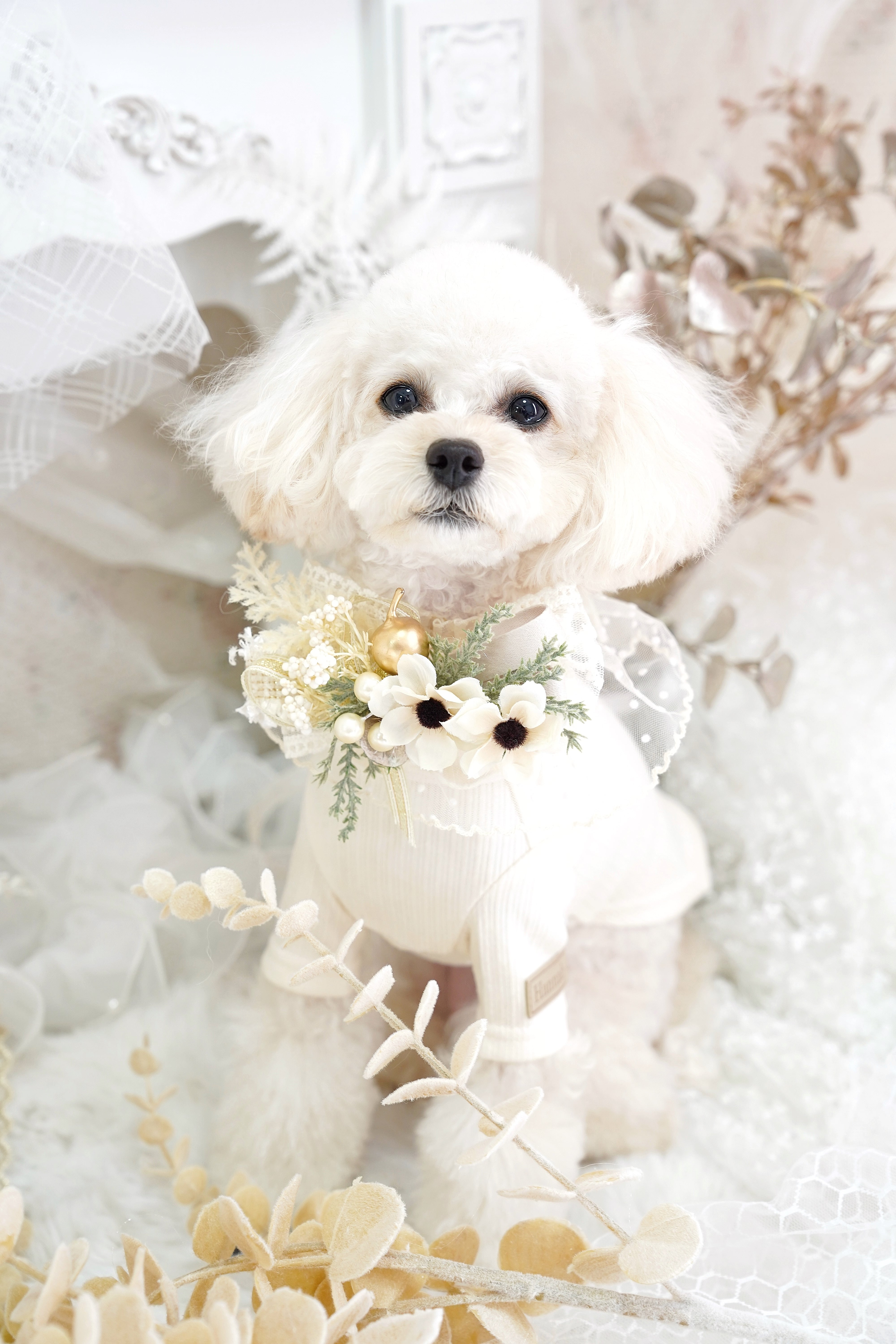 ・ワンちゃん用のアクセサリーに使われているお花は全てアーティフィシャルフラワーです。