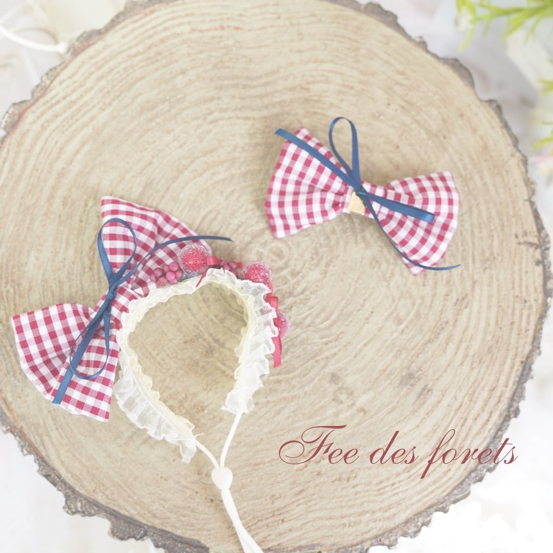 Fee des forets(森の妖精)のギンガム生地を使用したバレッタを用意致しました!