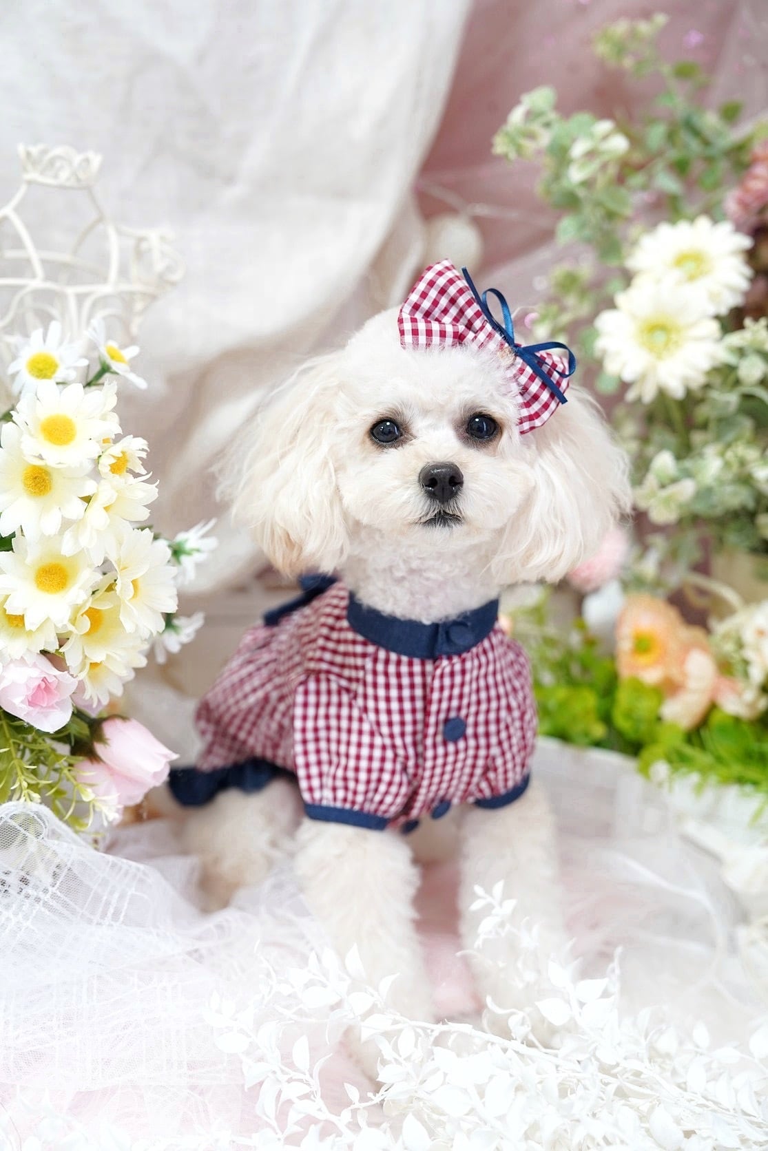 ・ワンちゃん用のアクセサリーに使われているお花は全てアーティフィシャルフラワーです。
