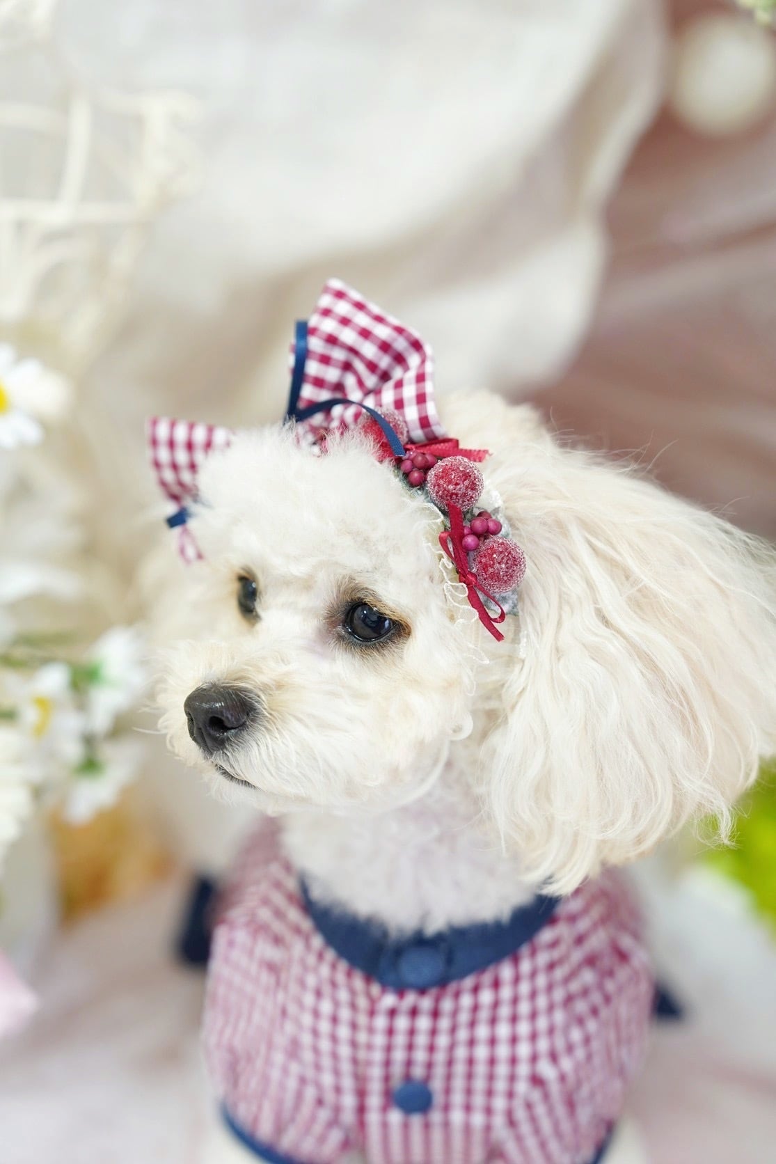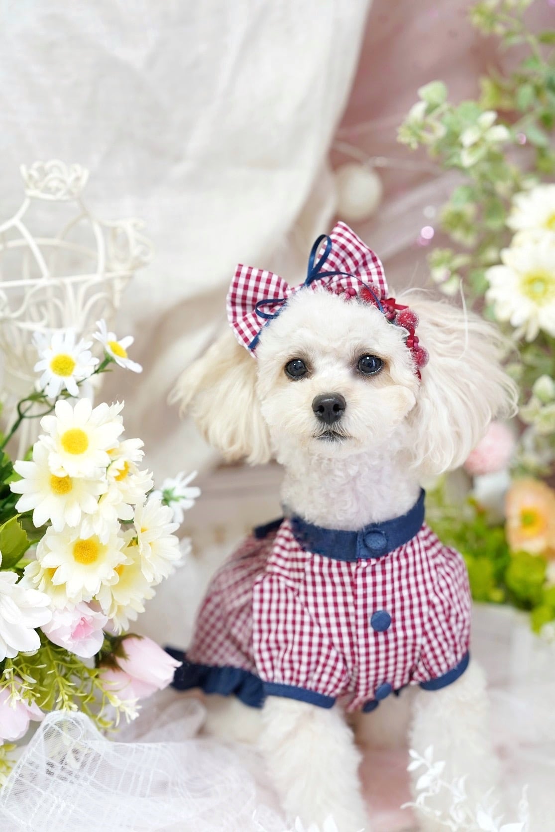 ・ワンちゃん用のアクセサリーに使われているお花は全てアーティフィシャルフラワーです。