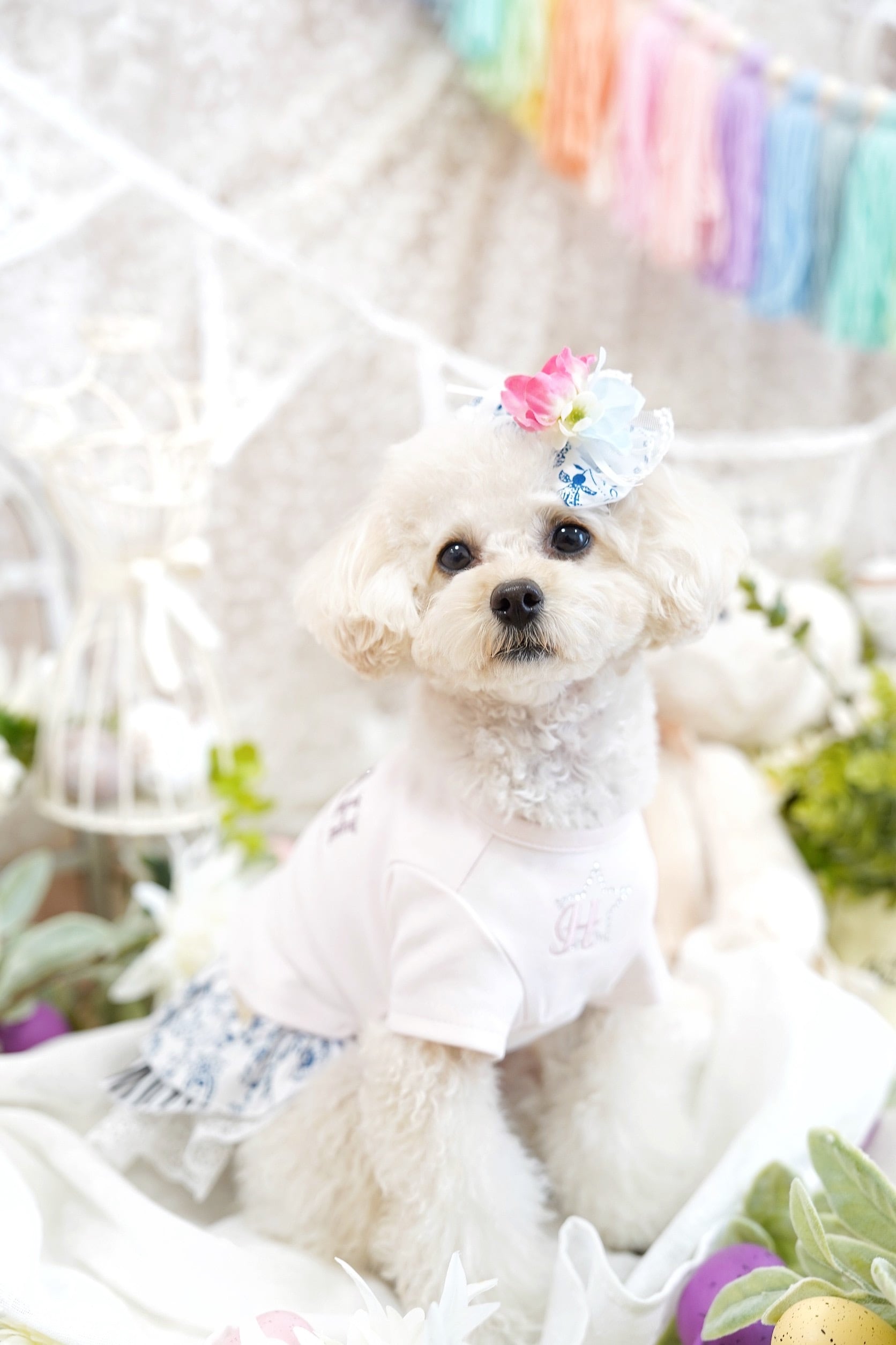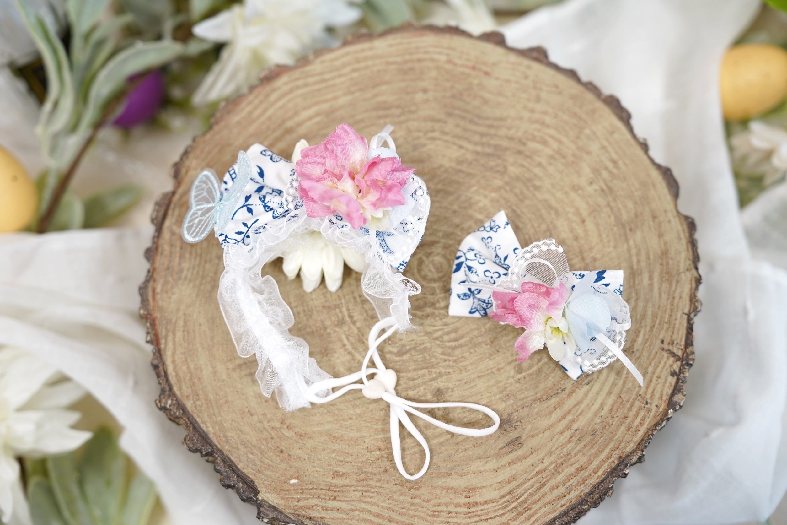 ・ワンちゃん用のアクセサリーに使われているお花は全てアーティフィシャルフラワーです。
