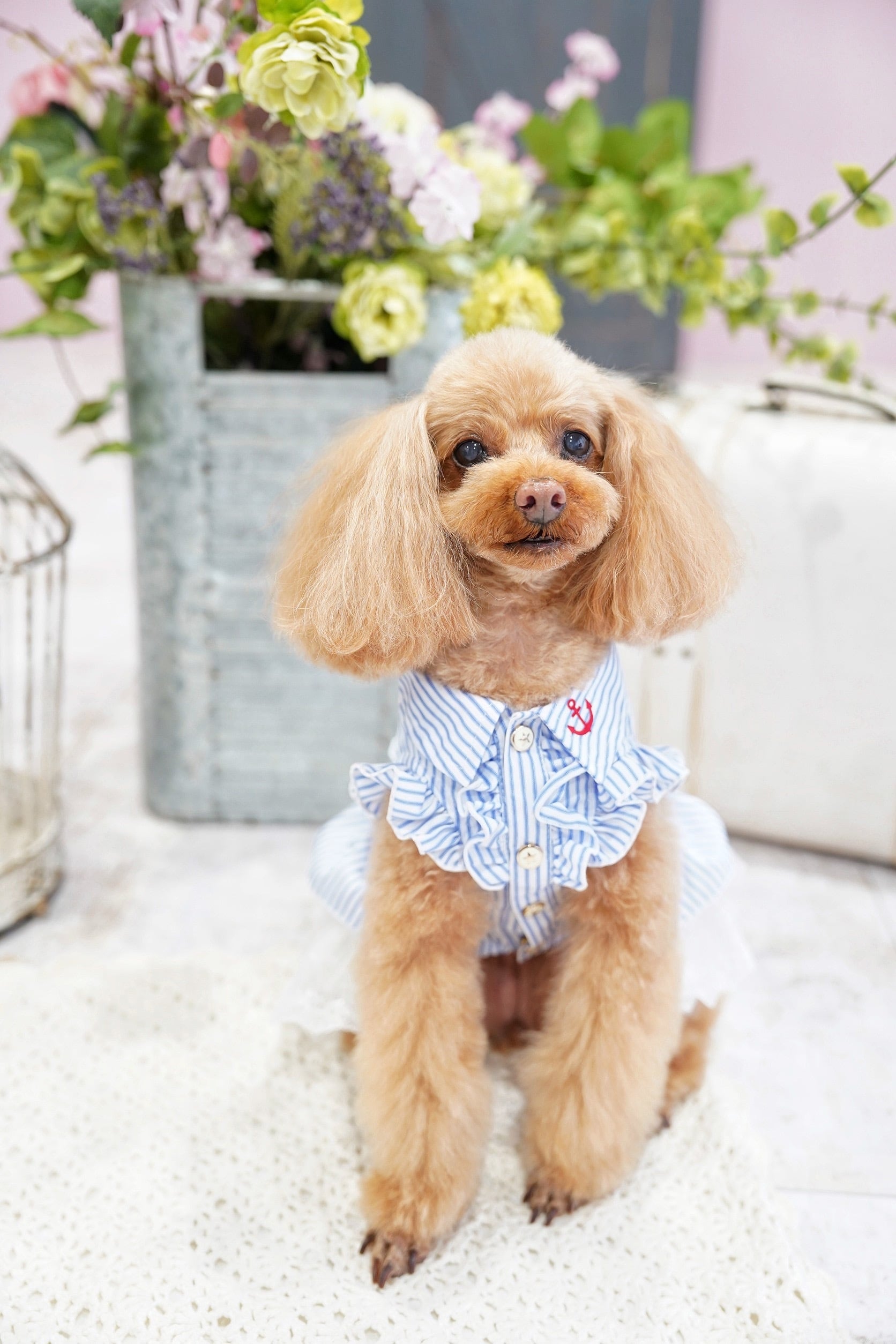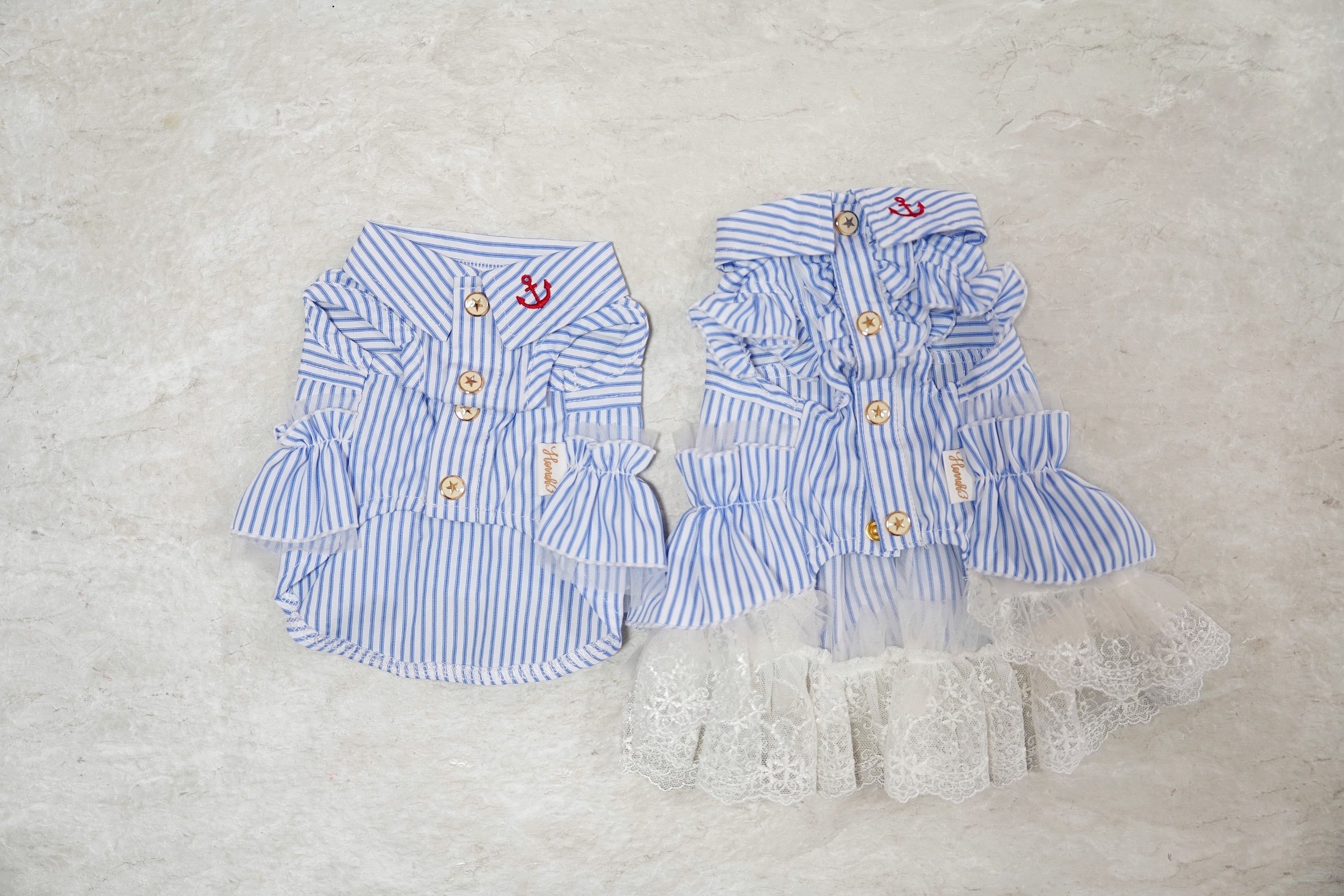 背中にはおそろいのフリルと差し色の刺繍を施し