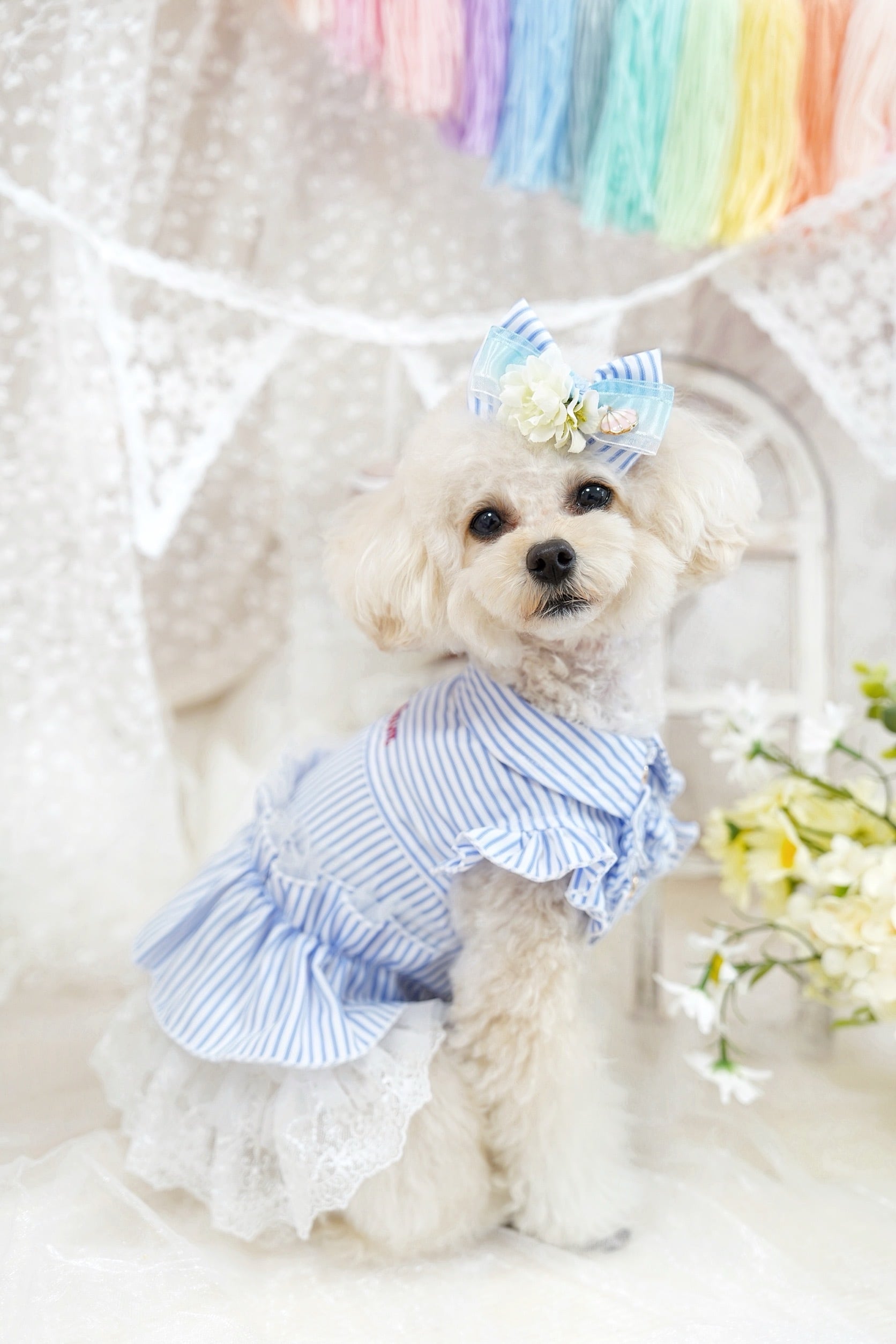 ・ワンちゃん用のアクセサリーに使われているお花は全てアーティフィシャルフラワーです。