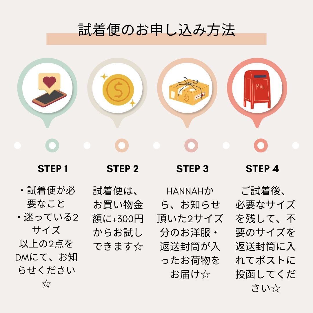 ご試着後、必要なサイズをお手元に残して頂き、不要なサイズを返送封筒に入れてポスト投函してください。(ご返却用の商品はタグを外さないようにお願いします。もし外されてしまった場合はご返却分のお洋服もお買取りになります。)